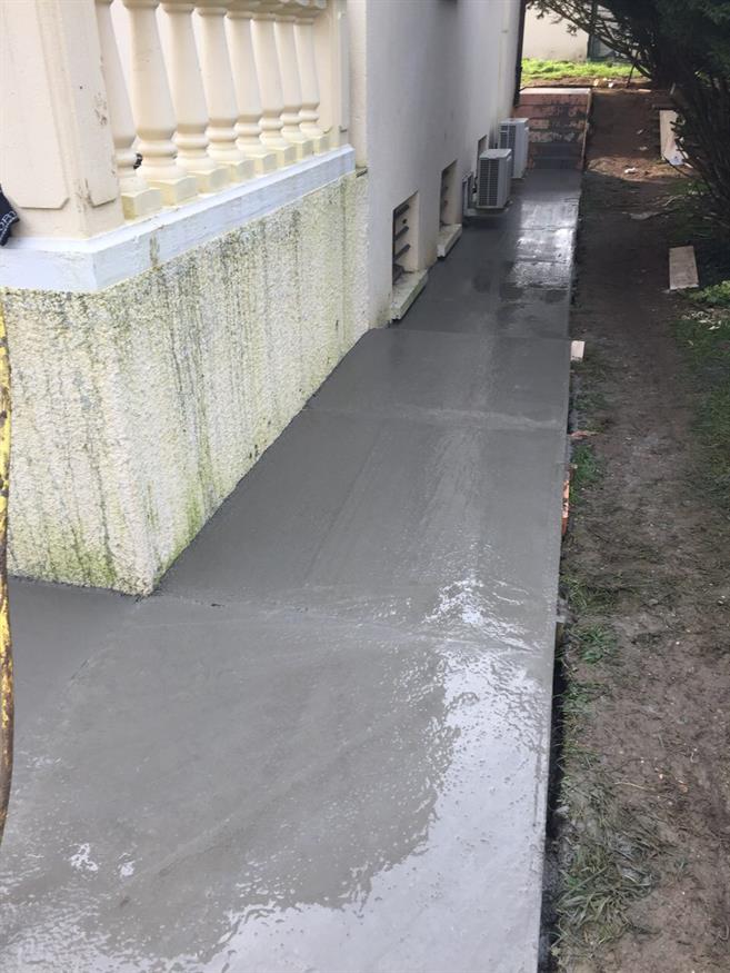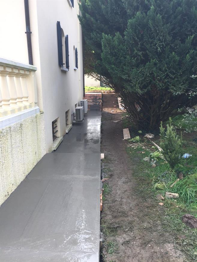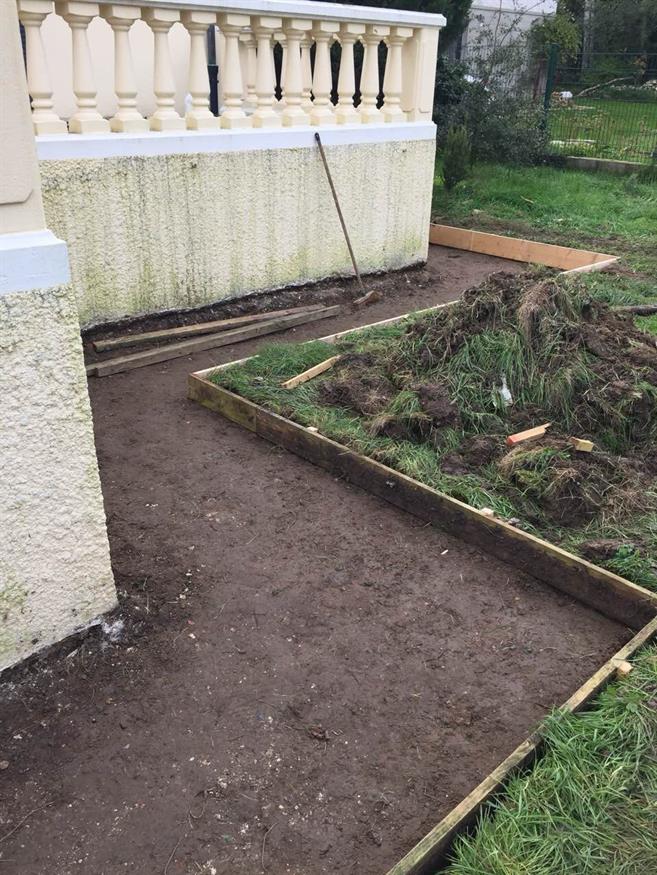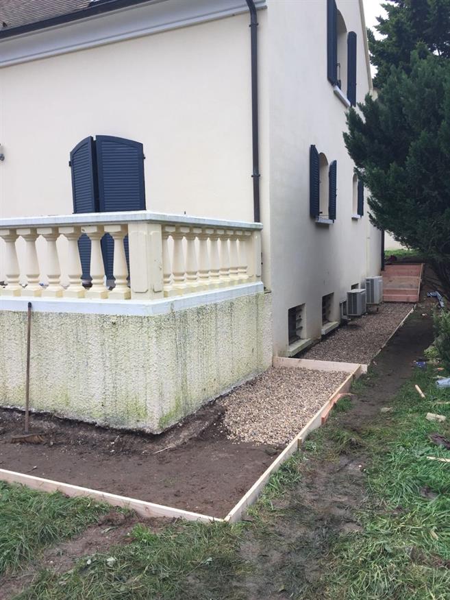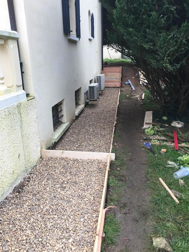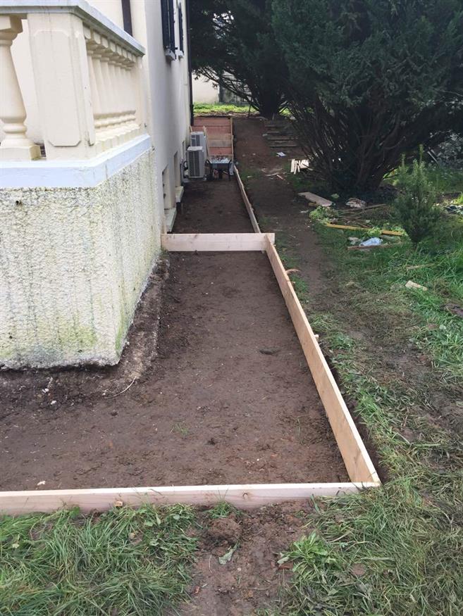 Préparation pour un trottoir tout autour de la maison