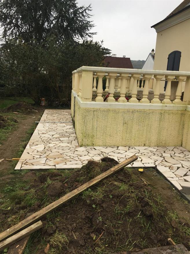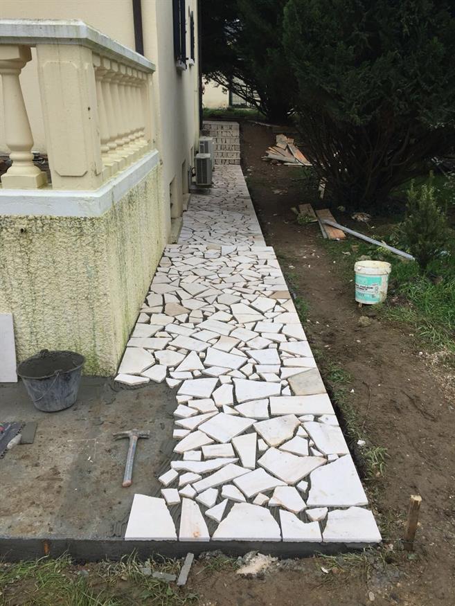 Pose de la pierre pour le trottoir tout autour de la maison